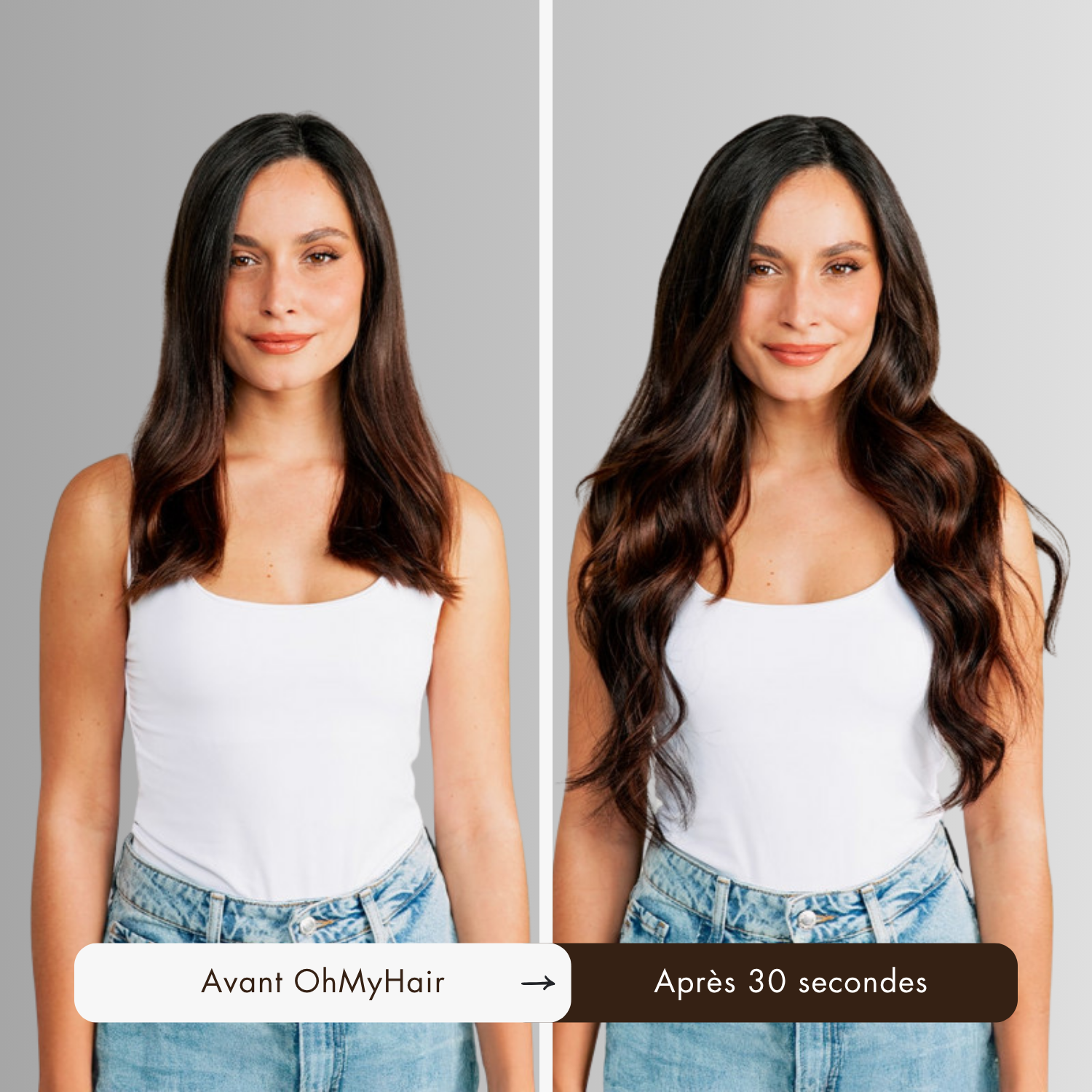 Nos extensions Halo OhMyHair sont conçues pour offrir une tenue parfaite et confortable toute la journée.
